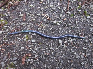 ヤマミミズは体長30センチ、青光色で気持ちのいいミミズではないが