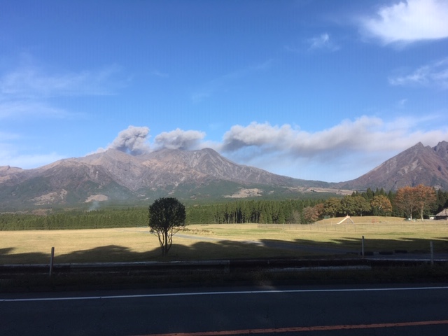 高森町に行ったら阿蘇中岳が凄まじい噴煙を上げていた。