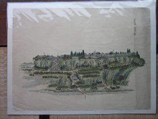 今回、私が横浜の古道具屋から入手した「岡城図」は、木版画である竹田美術館展示の