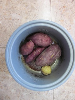 米の炊飯器にイモと水100-200CC(コップ1杯)の水を
