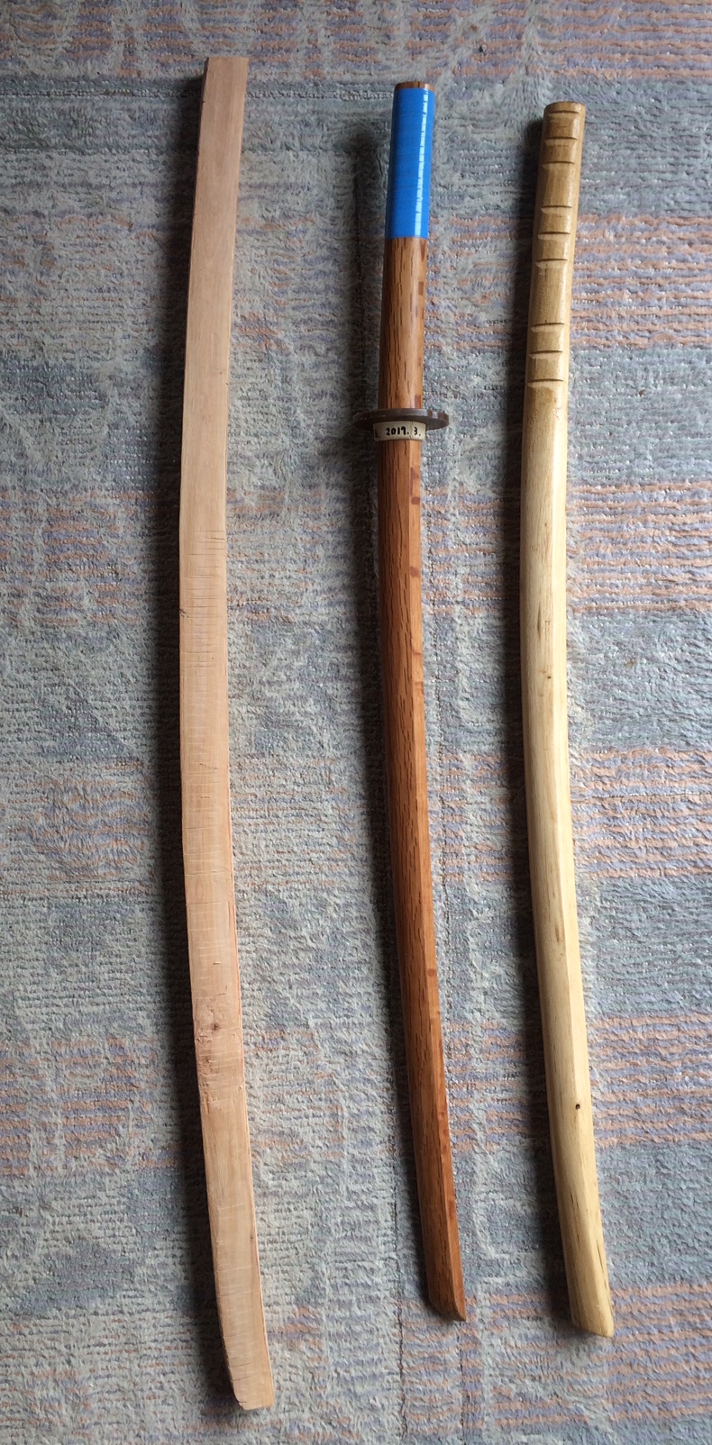 真ん中は樫の木で作られた市販の木剣。